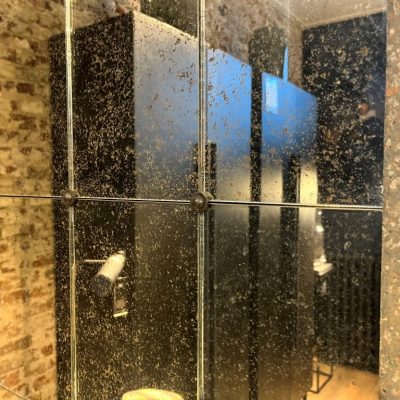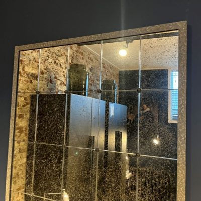 Miroir ‘Cervilla S’, composé d’un cadre à l’aspect antique et de carreaux de verre miroir patinés.