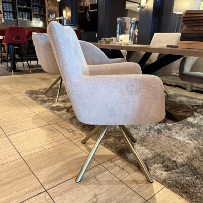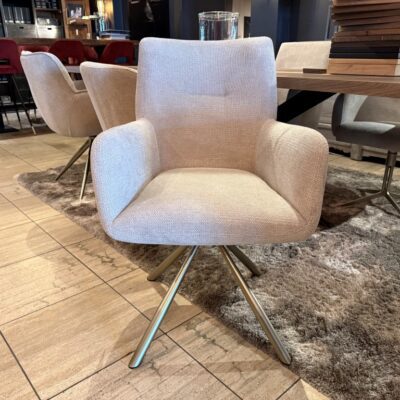 Chaise de salle à manger Balestrand, avec accoudoir et pied pivotant (C), en tissu : Mito Beige (SG1).