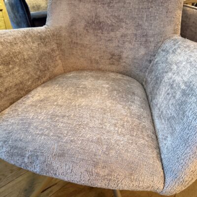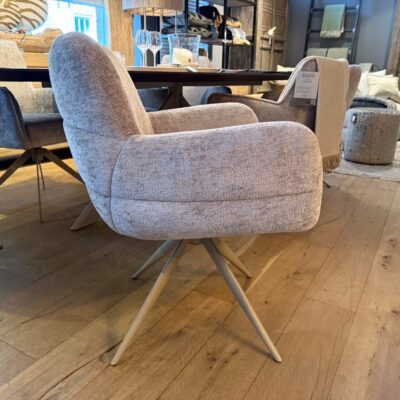 Chaise de salle à manger Carros, avec accoudoir et pied pivotant (T), en tissu : Trenza Taupe (SG2).
