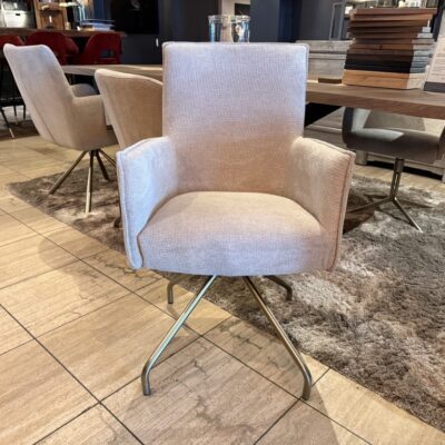 Chaise de salle à manger Hemsedal, avec accoudoir et pied pivotant (A), en tissu : Mito Beige (SG1).
