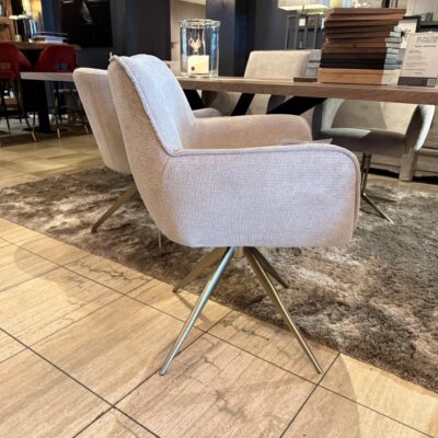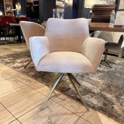 Chaise de salle à manger Poseidon, avec accoudoir et pied pivotant (T), en tissu : Mito Beige (SG1).