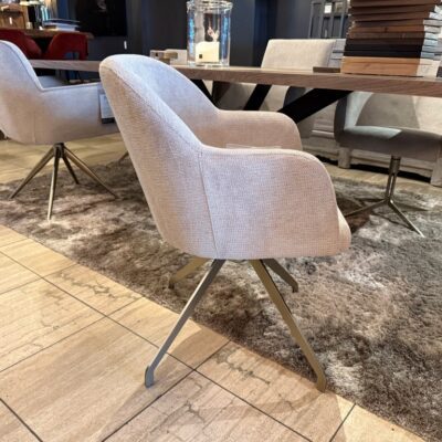 Chaise de salle à manger Rendalen, avec accoudoir et pied pivotant (E), en tissu : Mito Beige (SG1).
