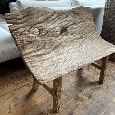 Banc rustique avec dossier, en bois d’orme.