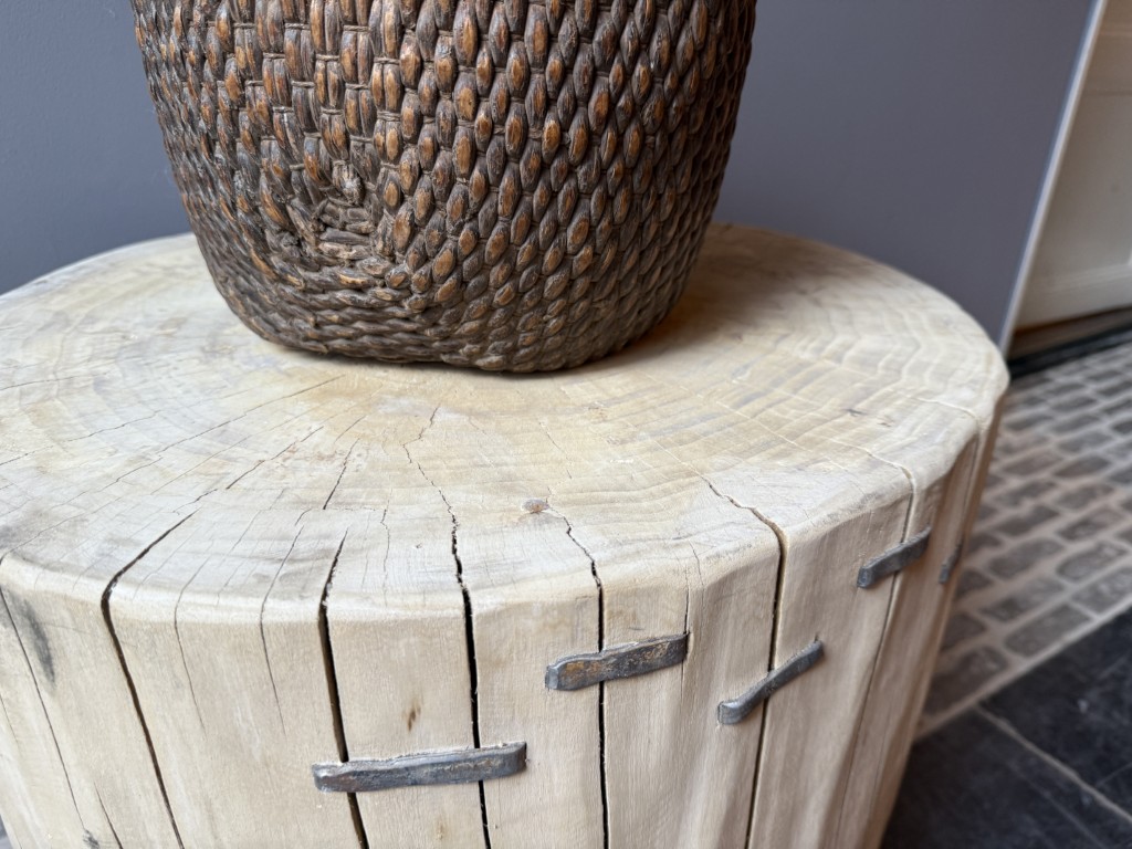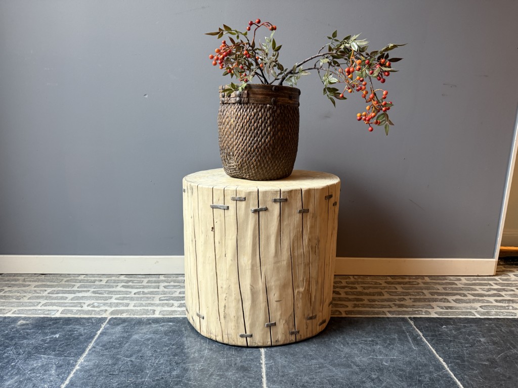 Table d’appoint, faite à partir d’un tronc d’orme.