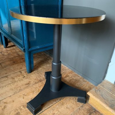 Table ronde ‘Avoria’ de la marque Eichholtz. La table est en métal et en verre.