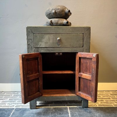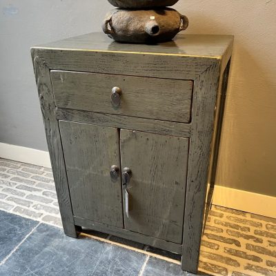 Table de chevet laquée gris foncé/vert ‘Almeria’ avec 1 tiroir et 2 portes.
