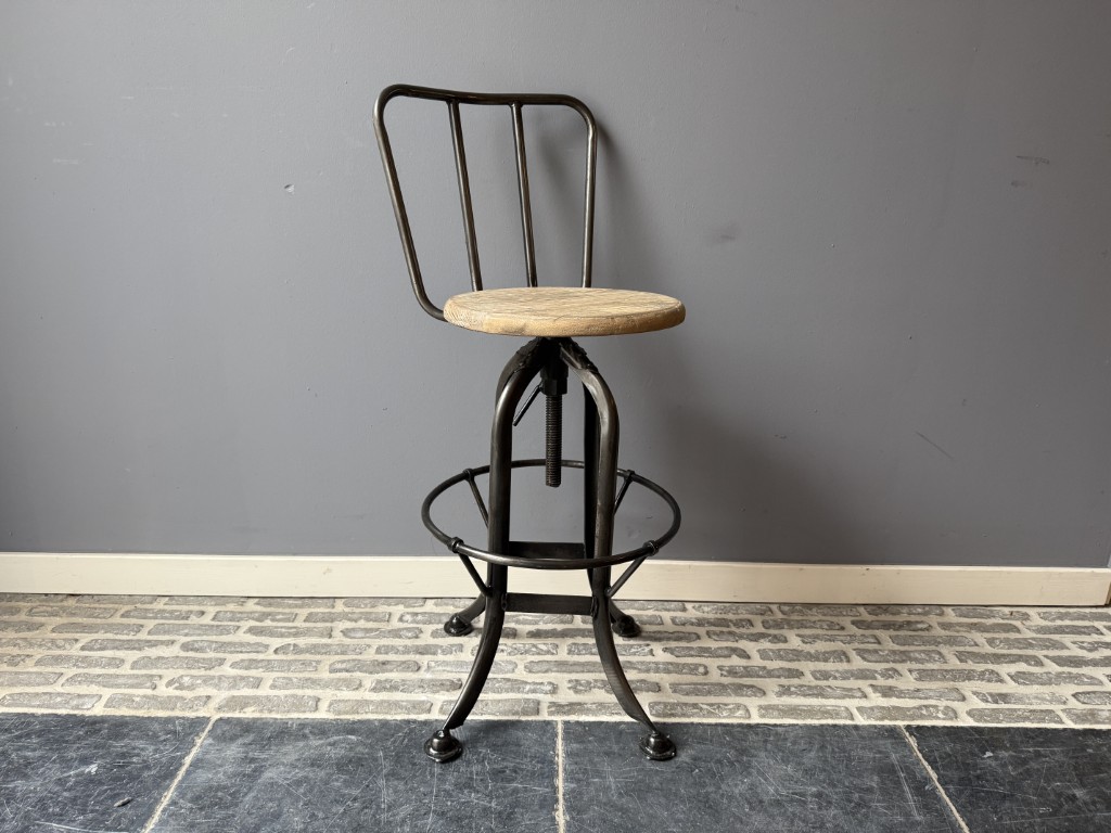 Tabouret Pivotant Bois d’Orme Avec Dossier